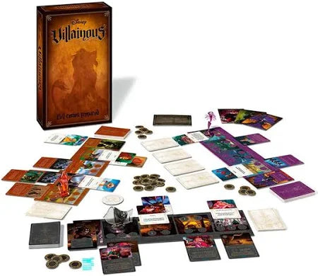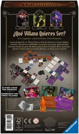 Juego de mesa asimétrico con 3 famosos villanos Disney como protagonistas: Scar, Yzma y Ratigan; cada uno tiene un objetivo malvado que alcanzar y varios héroes a los que derrotar: Simba, Kuzco, Basil y muchos más...