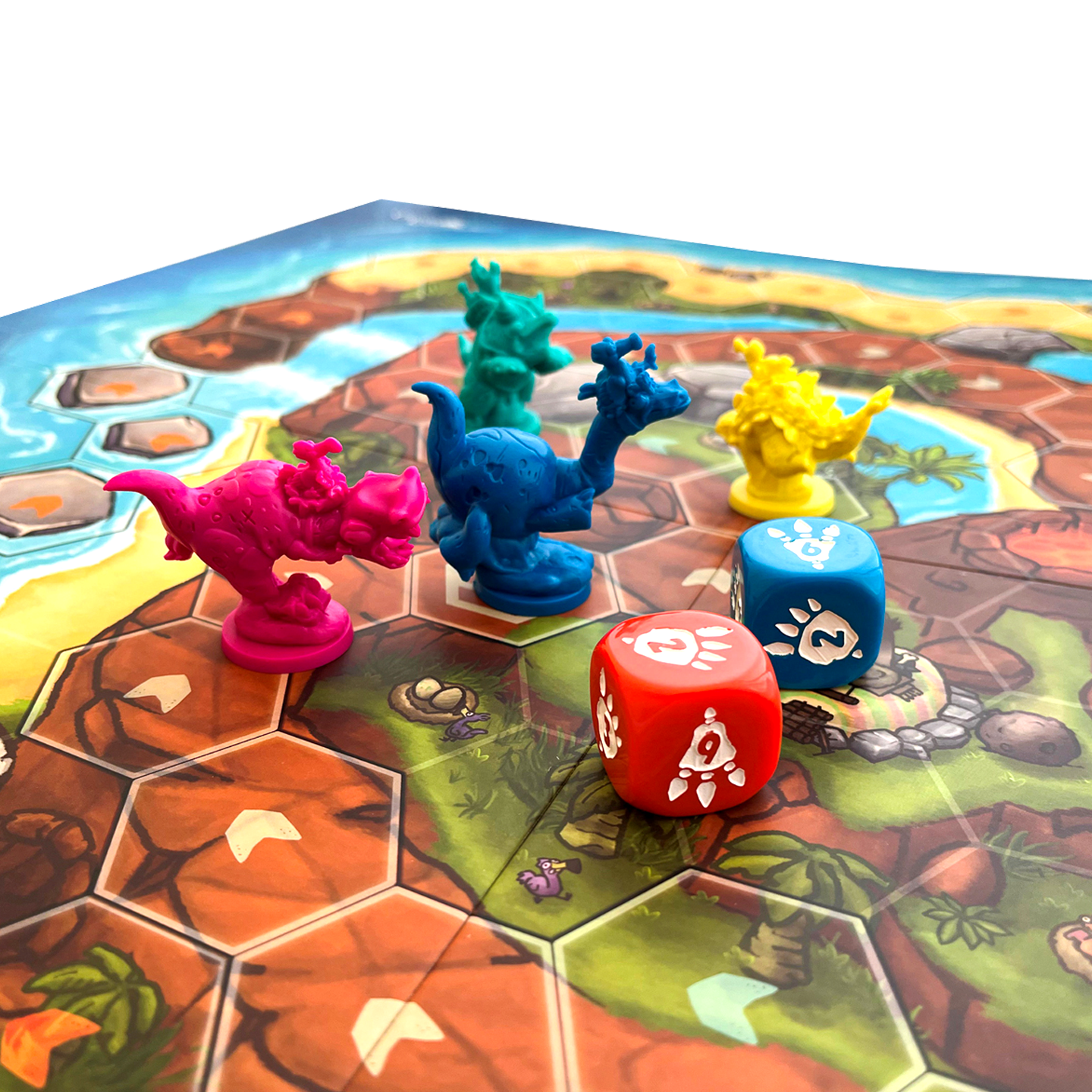 ¡Toma tu lugar en la línea de salida con este galardonado juego de carreras de destreza para 1-6 jugadores! Con miniaturas llenas de carácter y extravagantes, Dodos Riding Dinos es un juego divertido para toda la familia. ¡Lanza huevos, tira plátanos, lanza meteoritos, rueda troncos, lanza la pluma y corre con el token Dodo para ganar la carrera!