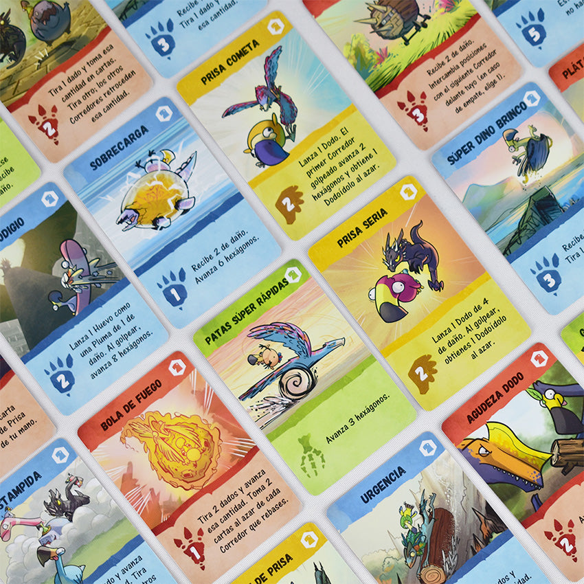 ¡Descubre los secretos de El Dodorado! El mejor juego de carreras de destreza regresa con esta secuela que se puede jugar por sí sola o integrada con el juego original de Dodos Riding Dinos. Sigue corriendo por la selva que conduce al templo de El Dodorado. Los nuevos circuitos cuentan con casillas de trampas y encantos para una diversión más caótica en el tablero de juego. Avanza con cartas de movimiento y resuelve sus divertidos efectos para poner a prueba tu destreza lanzando proyectiles a tus rivales. ¡Presentamos las cartas de Dash para lanzar a tu dodo y ganar cartas de ídolo con poderes épicos! Conoce a 9 nuevos dinosaurios con habilidades únicas, adorables dinomeeples y fantásticas miniaturas que son divertidas y fáciles de pintar. ¡El corredor más rápido descubrirá el misterio de El Dodorado!