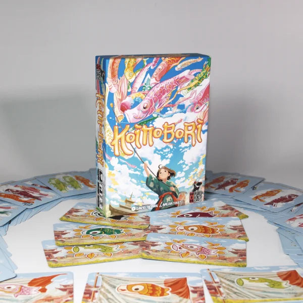 Koinobori es un juego de cartas donde los jugadores jugarán cartas de Koinobori visiblemente en los mástiles comunes del festival y ocultamente en los mástiles personales. Se trata de un juego de apuesta oculta en tu mástil personal con mayorías visibles en los mástiles del festival. Al principio de la partida podrás jugar tus cartas en tu propio mástil para tener más habilidades, pero tienes más riesgo de tener menos información en los mástiles del festival. Además, si tardas en jugar tus cartas en tu mástil, tus posibilidades de influir en los mástiles del festival disminuyen. Fíjate en las cartas que toman los demás jugadores y crea estrategias para que no ganen. Cuando la partida termine, todos puntuarán según los Koinoboris con más presencia en los mástiles del festival, cuantos más Koinoboris del mismo color tengas en el mástil, más puntos conseguirás, y atento con las acciones gratuitas de algunas cartas que te permiten cambiar la presencia de los diferentes colores en los mástiles del festival. ¿Podrás no perder de vista a tus oponentes y ganar?