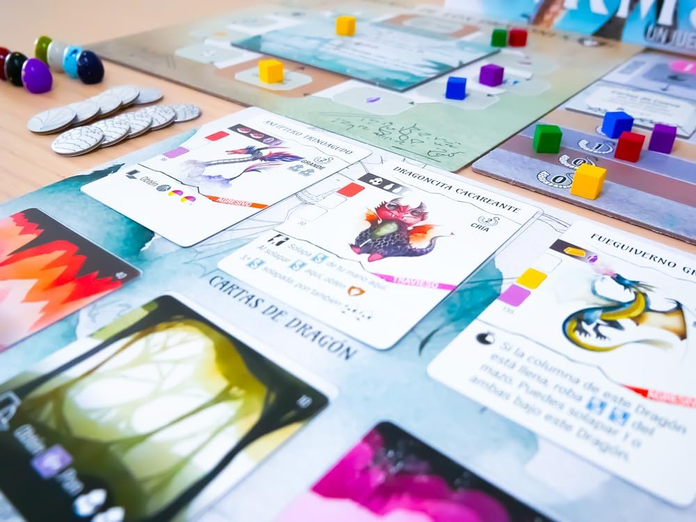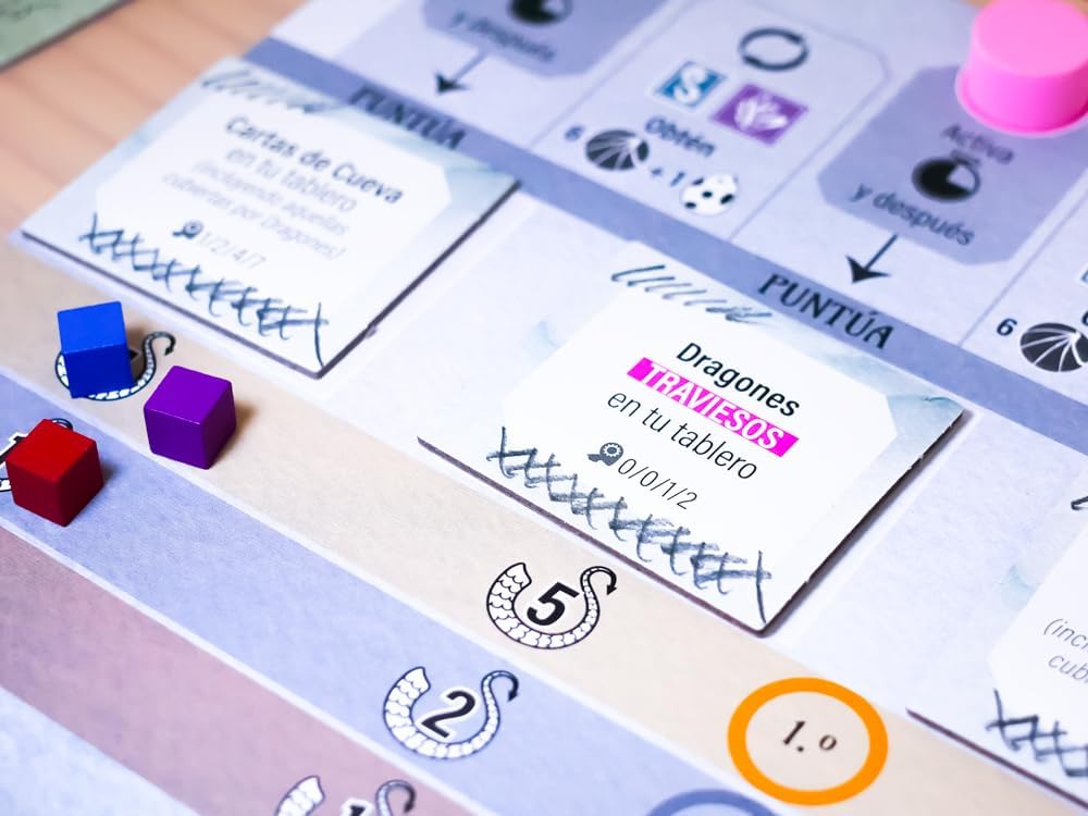 En Wyrmspan construirás un santuario para dragones. Tu santuario empieza con 3 espacios excavados a la izquierda en tu Caverna Carmesí, Gruta Gualda y Abismo Amatista. Durante la partida, excavarás más espacios en tu santuario y atraerás a dragones para que vivan en él, encadenando potentes habilidades y ganándote el favor del Gremio de los dragones.